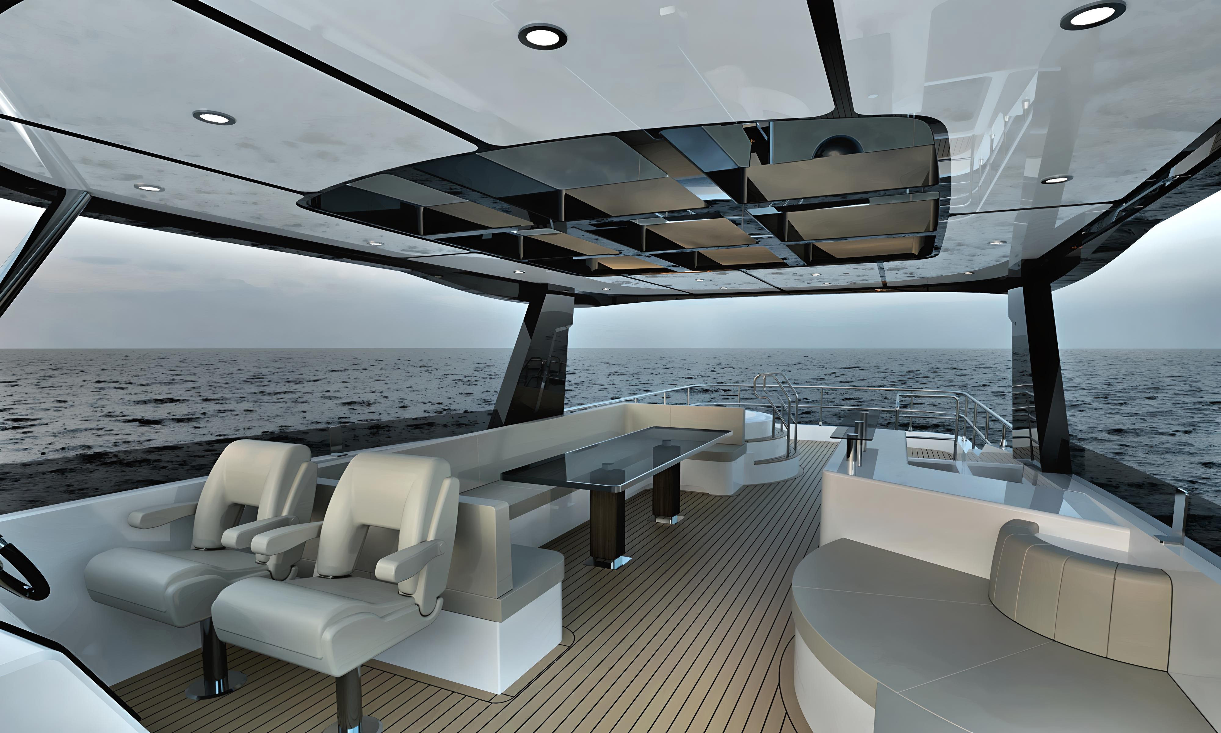 這艘游艇擁有令人驚嘆的前后甲板設(shè)計,空間寬闊得仿佛能容納整個海洋的遼闊。