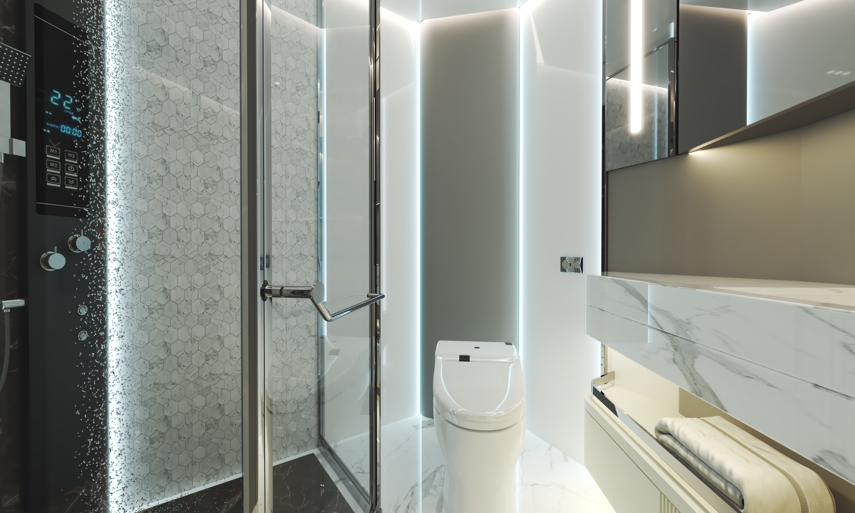寬敞明亮的衛(wèi)浴間,精裝設(shè)計,完美動線,暢飲暢聊后清爽淋浴,然后酣然入睡。