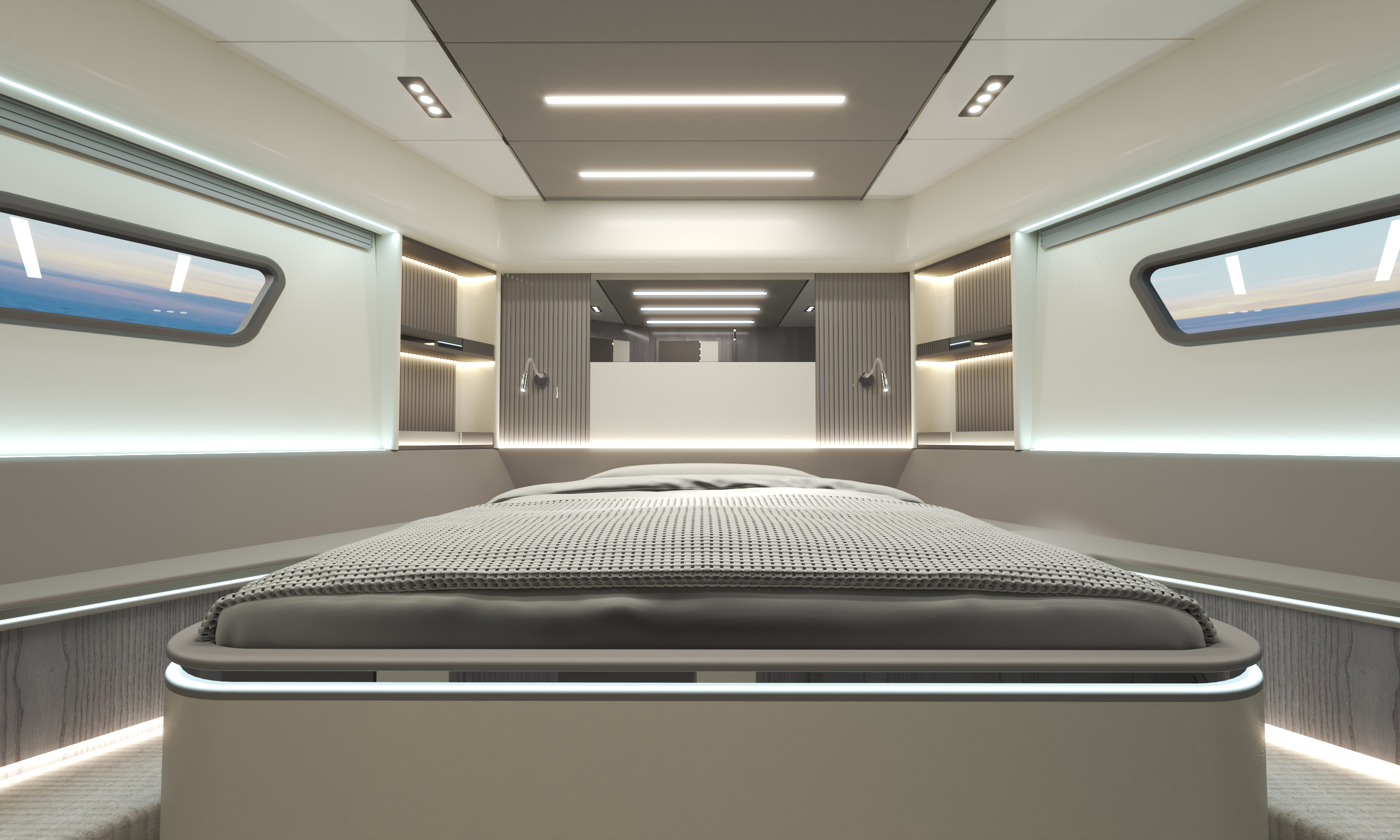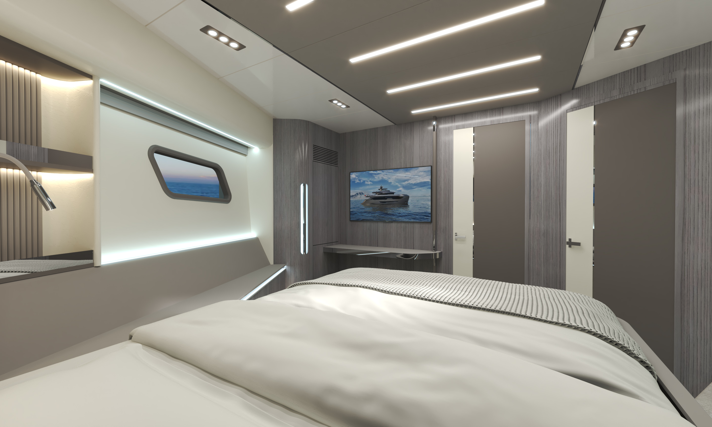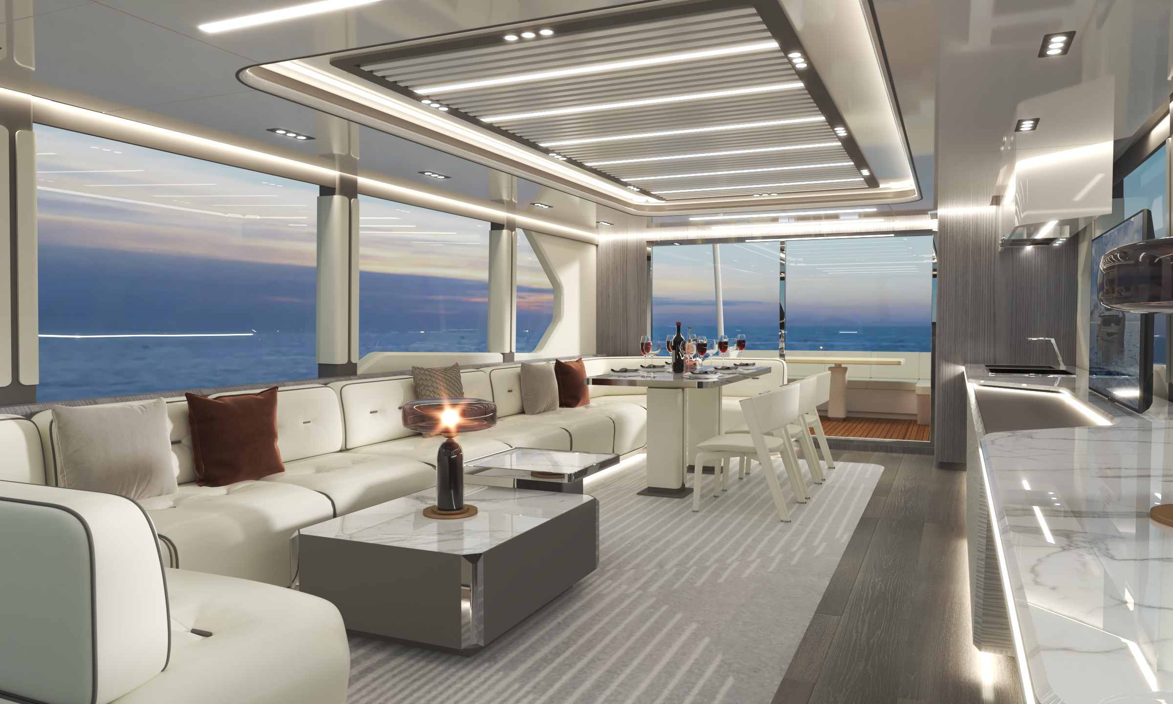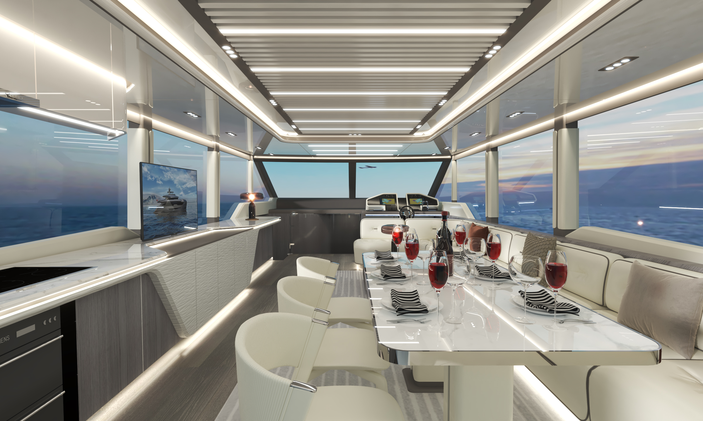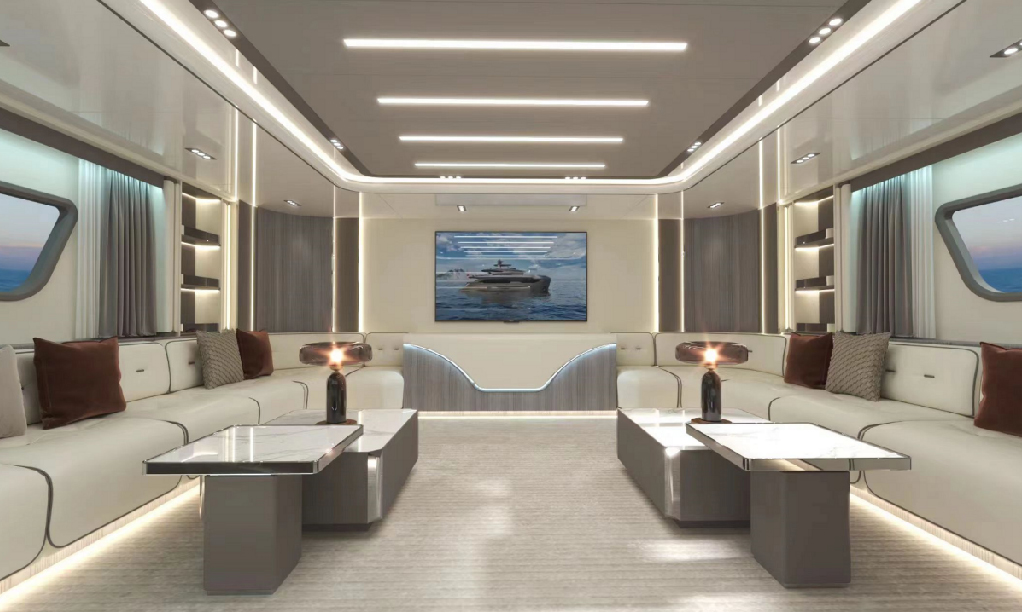 定制化豪華商務(wù)沙龍廳,空間最大化,大窗戶審美設(shè)計同時也提升了甲板和內(nèi)部整體空間的通透性。