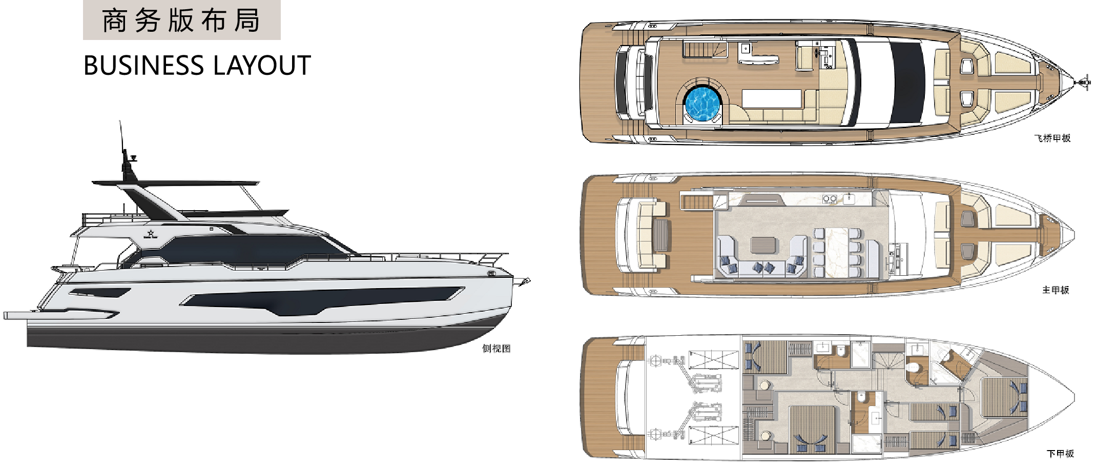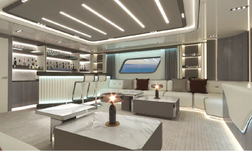 下甲板多功能廳,滿足美學(xué)和時尚的藝術(shù)理念,各種布局完美的局部設(shè)計,更加增強了該艇外觀的現(xiàn)代型風(fēng)格。