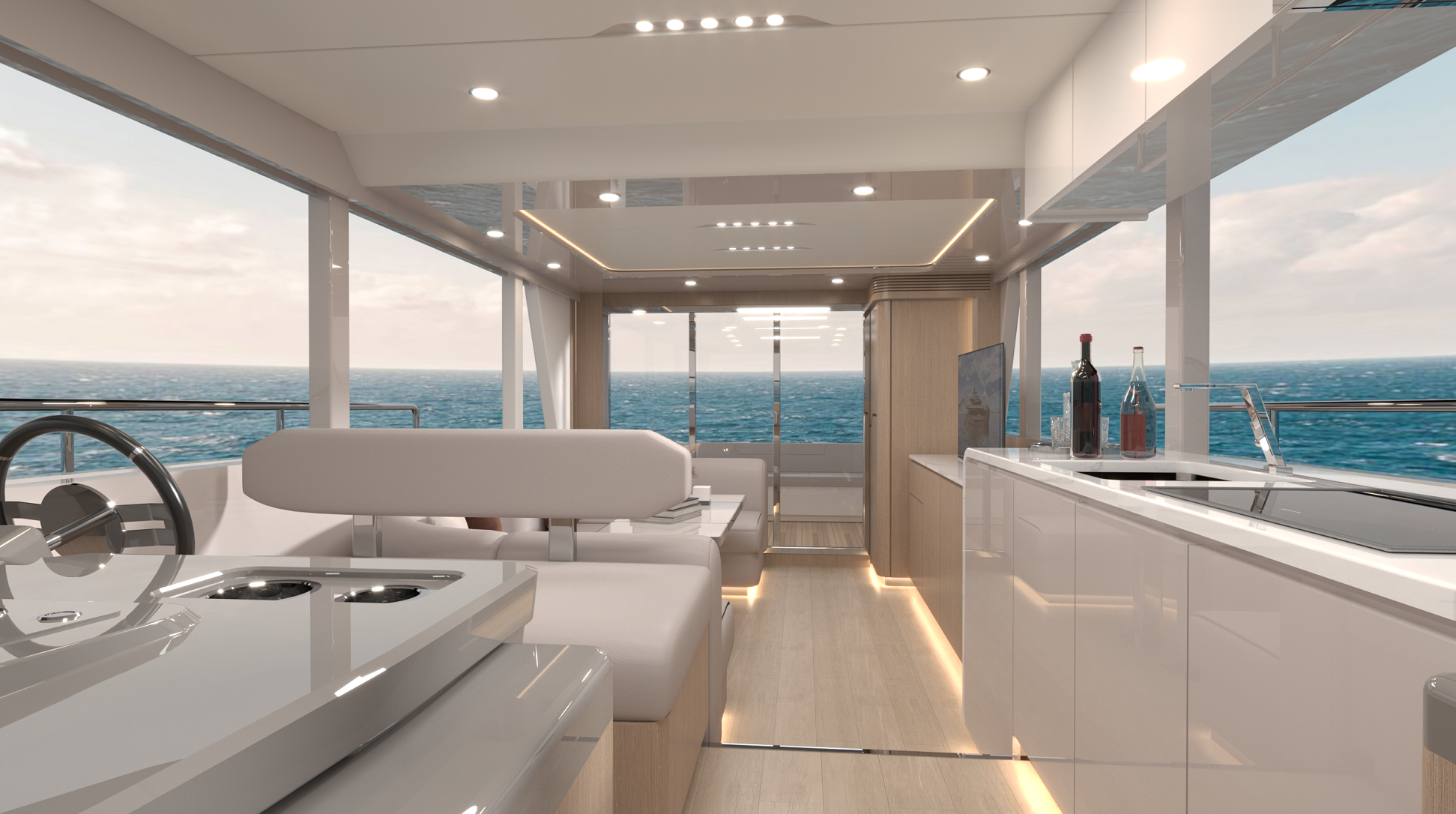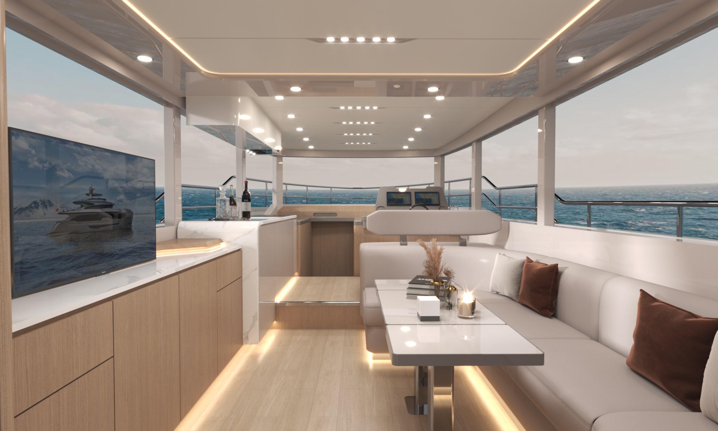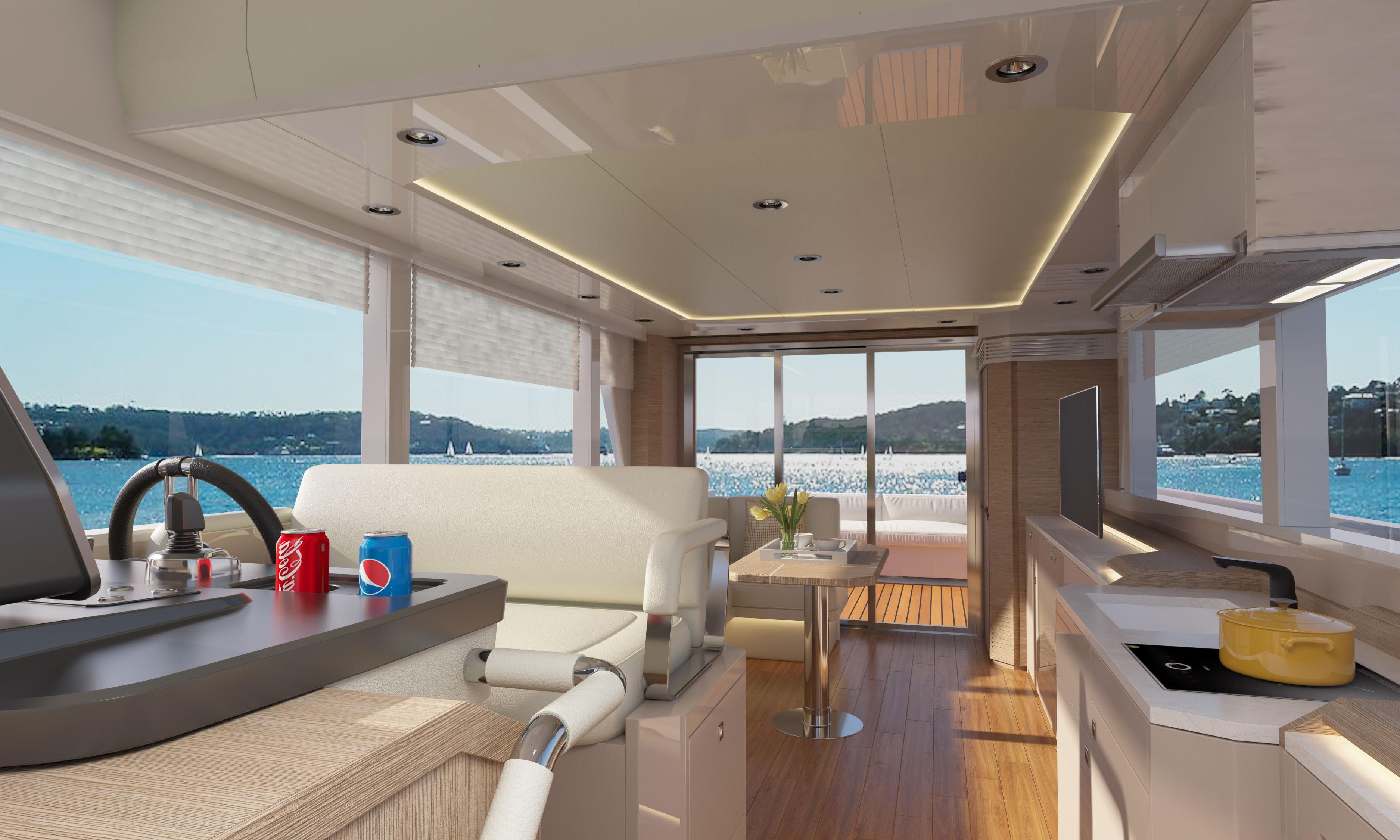 簡約休閑沙龍功能區(qū),開放式甲板空間,滿足不同的水上生活方式。主甲板布局集沙發(fā)、餐桌、娛樂系統(tǒng)、開放式廚房以及體驗感十足的駕駛區(qū)為一體,是一個集休閑和新生活方式的商務交流平臺。體驗一次烹飪,來一場樂趣party,觥籌交錯,肆意灑脫,與親朋好友,縱情海天之間,體驗無拘歡樂。