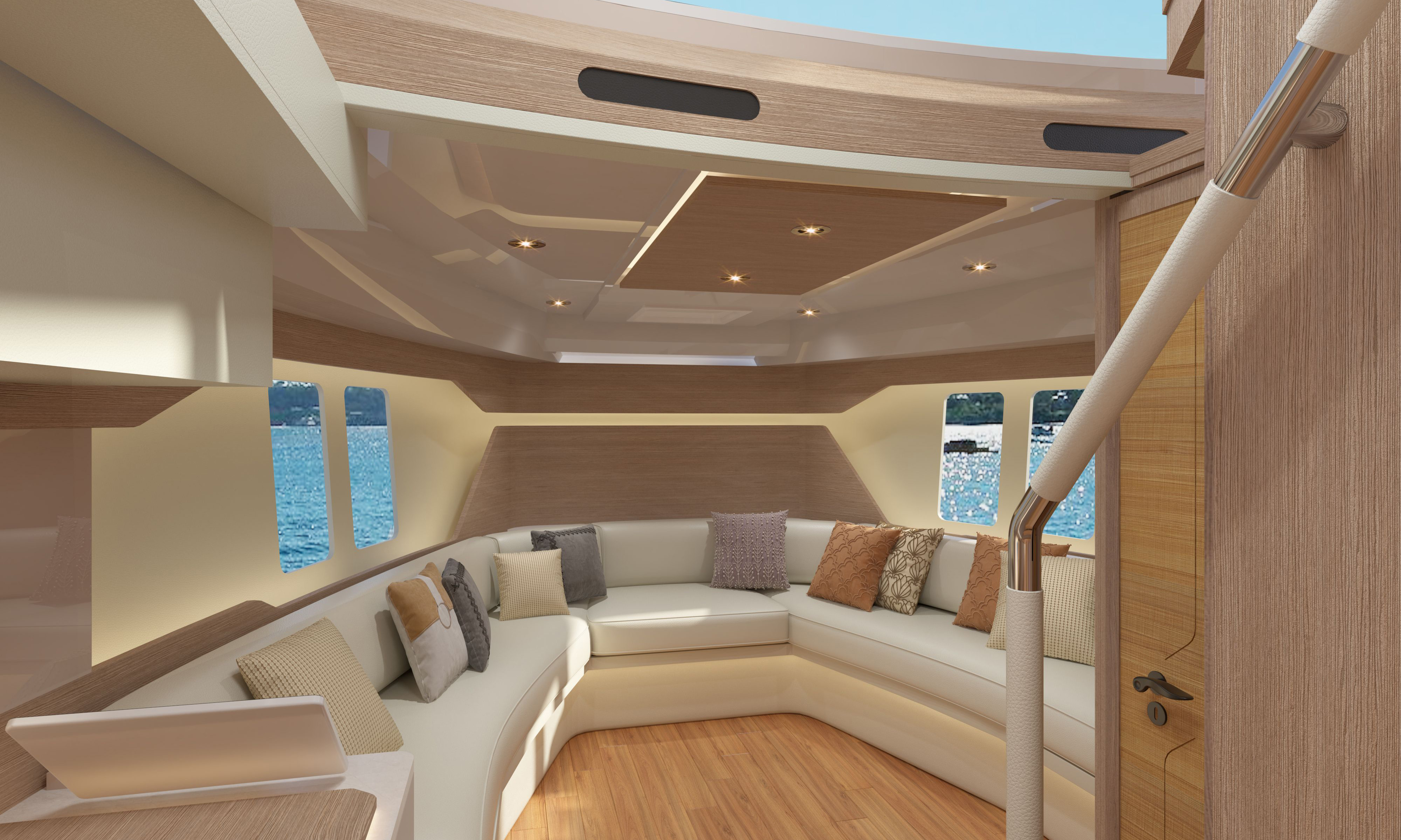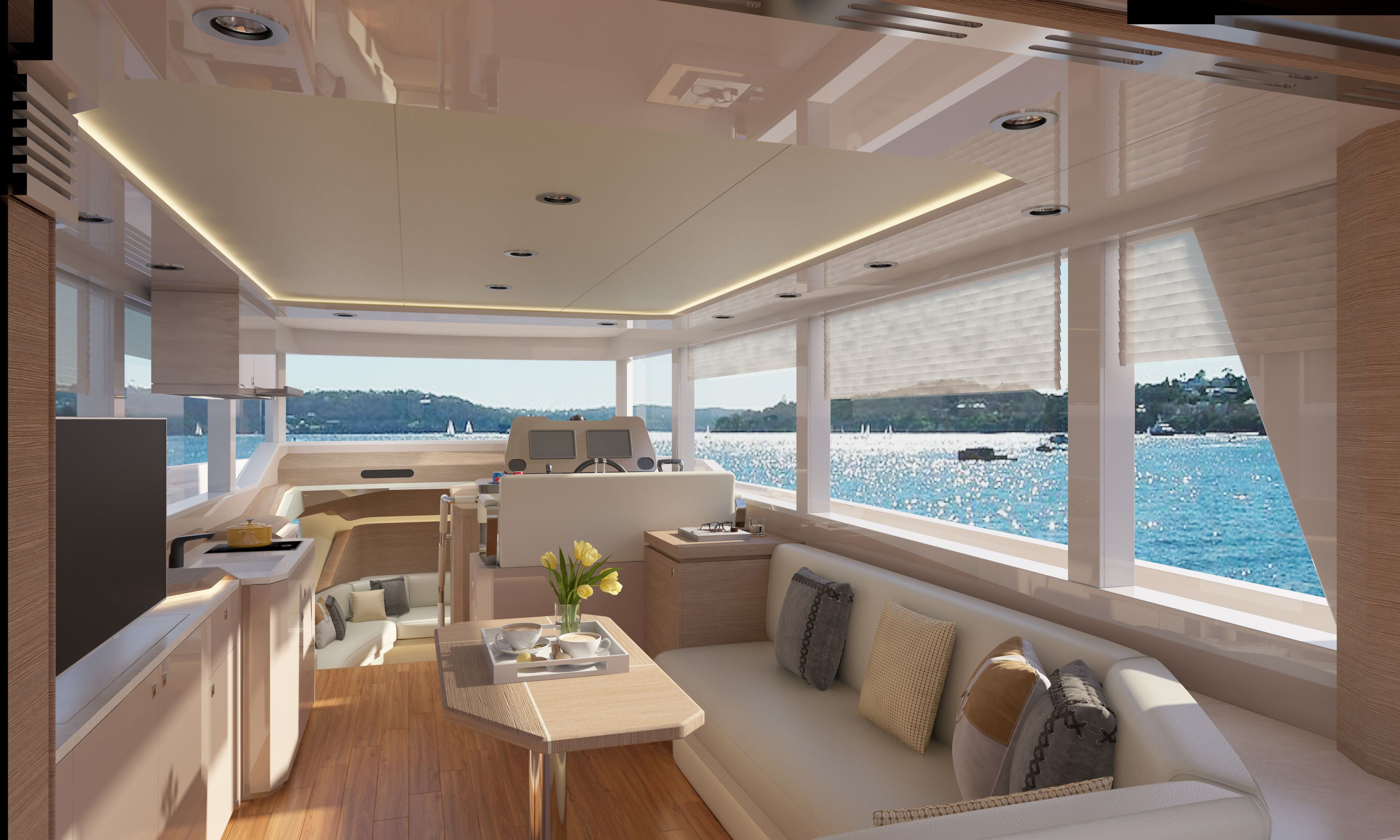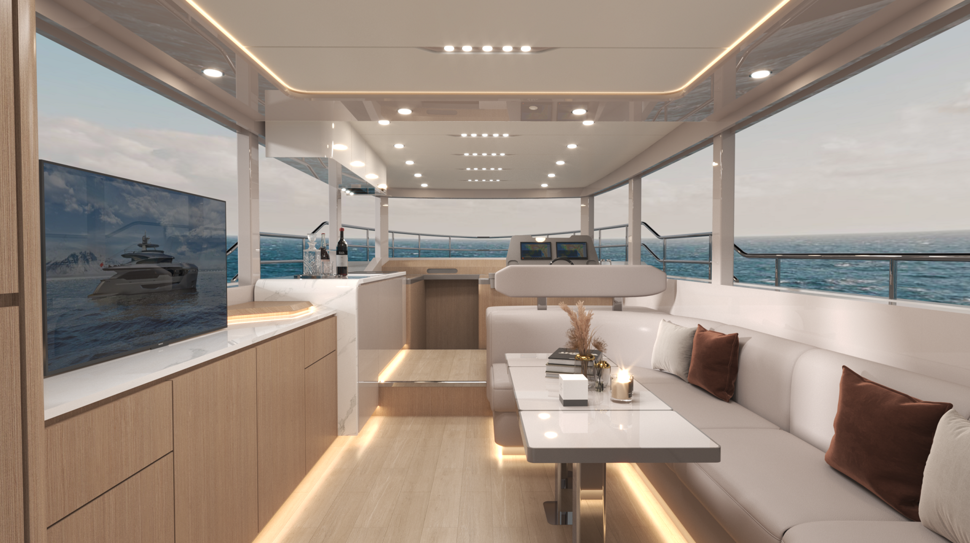 簡約休閑沙龍功能區(qū),開放式甲板空間,滿足不同的水上生活方式。主甲板布局集沙發(fā)、餐桌、娛樂系統(tǒng)、開放式廚房以及體驗感十足的駕駛區(qū)為一體,是一個集休閑和新生活方式的商務交流平臺。體驗一次烹飪,來一場樂趣party,觥籌交錯,肆意灑脫,與親朋好友,縱情海天之間,體驗無拘歡樂。